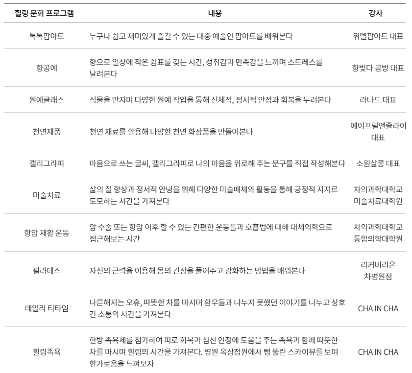 1. 매일 2시에 진행되는 힐링프로그램이 너무 좋았어요.