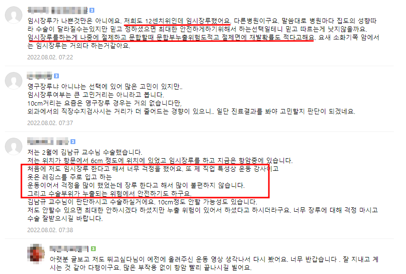 5. 김남규 교수님 믿어보세요. 10cm면 나쁘지 않은 위치라고 생각합니다. 장루여부 물어보세요. 아마 답해주실거예요.