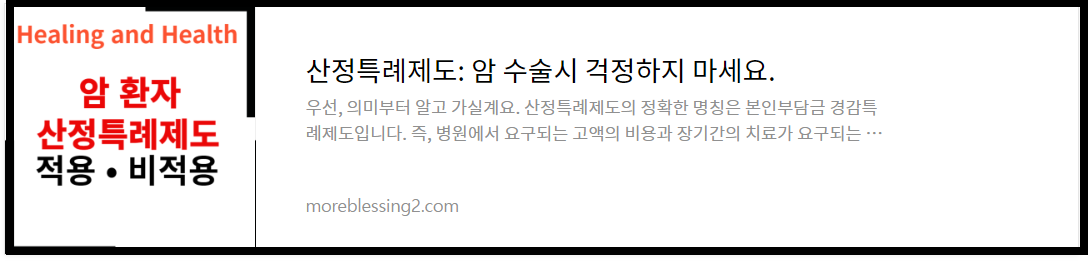 이것은 우리나라에서 시행하는 건강보험 산정특례제도라는 훌륭한 제도 때문인데 이 것은 다음 목차에서 자세히 설명을 드리겠습니다.