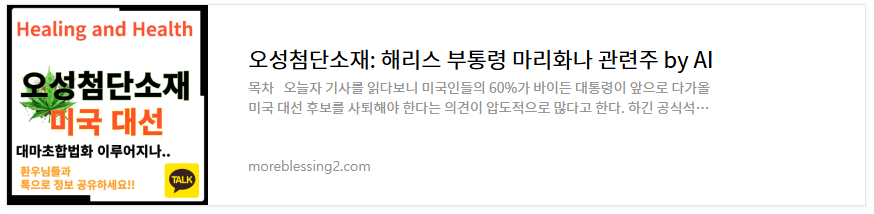 오성첨단소재: 해리스 부통령 마리화나 관련주 by AI (0) | 2024.07.13 |