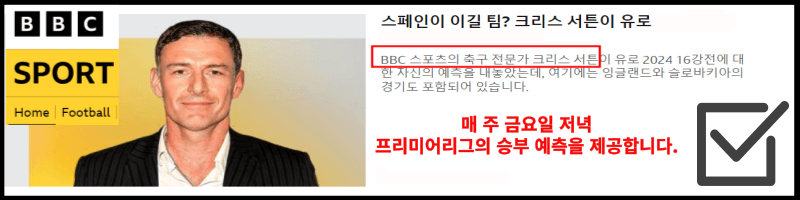 BBC에 축구전문가가 있습니다. 매 주 프리미어리그에 대한 경기 예측을 진행하는데 기사가 올라오는 즉시, 번역해서 올려드릴 예정입니다. 보통 목요일이나 금요일 날 기사가 업로드 되니, 인터넷에 올라오자마자 번역 후에 포스팅을 하도록 하겠습니다.