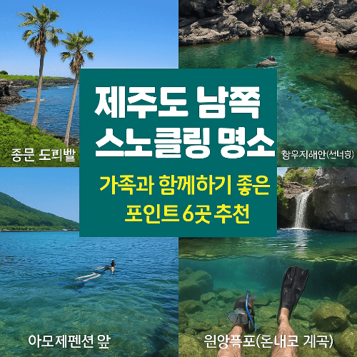 제주도는 사방이 바다로 둘러싸인 섬이지만, 그 중에서도 제주 남부 지역은 특히 완만한 해안선과 얕은 수심, 그리고 조용한 분위기 덕분에 가족 단위 스노클링 여행지로 인기를 끌고 있습니다. 이번 글에서는 중문관광단지부터 보목동, 돈내코 계곡까지, 남쪽 지역의 숨겨진 스노클링 명소 6곳을 소개합니다.