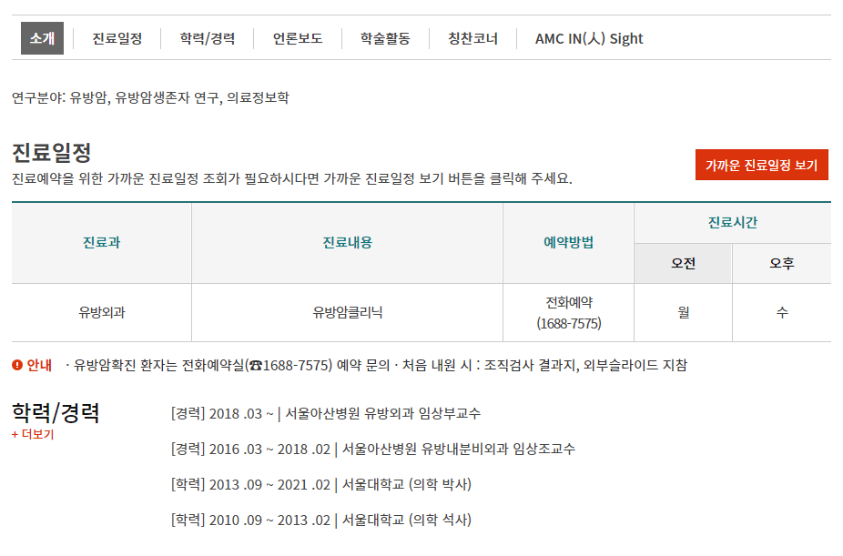 5. 유방암명의: 서울 아산병원 정일용 교수님 환자들의 솔직한 리뷰
