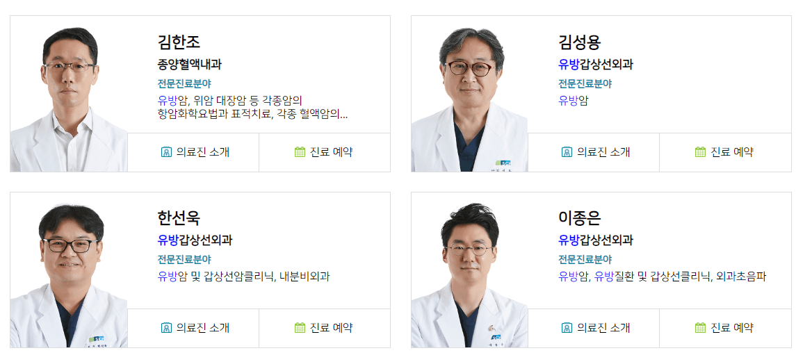 충청도 지역 중에서도 천안과 아산 지역에서는 천안 단국대병원과 순천향대 병원이 유방암 수술 잘하는 병원으로 알려져 있다. 그리고 포스팅을 하다 보니 요즘 트렌드가 유방암센터가 따로 있어도 모든 과정을 유방암 교수 한 분이 하시는 것이 아니라 다른 과 선생님들과 협업을 진행하며 수술을 하고 케어를 하는 경우가 많았다. 대표적으로 로봇수술 같은 경우는 성형외과 선생님들과 함께 하시는 경우가 많았다.